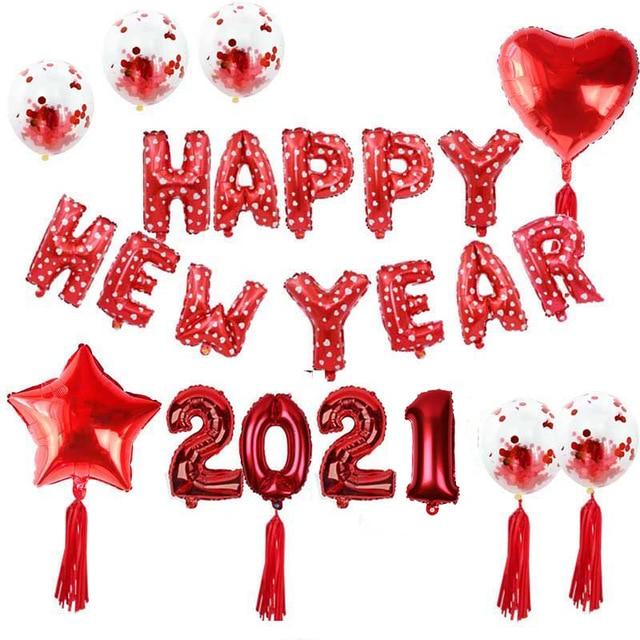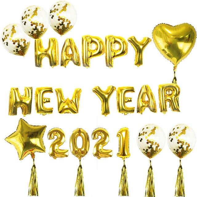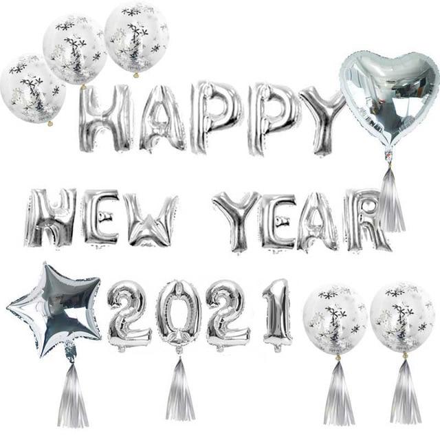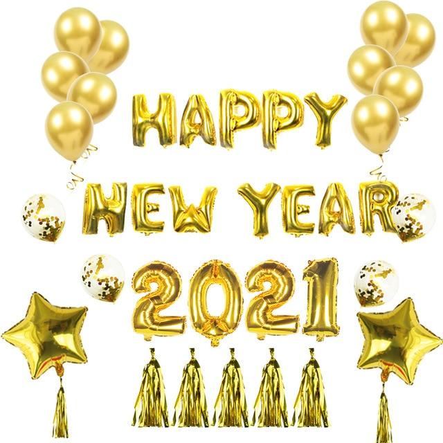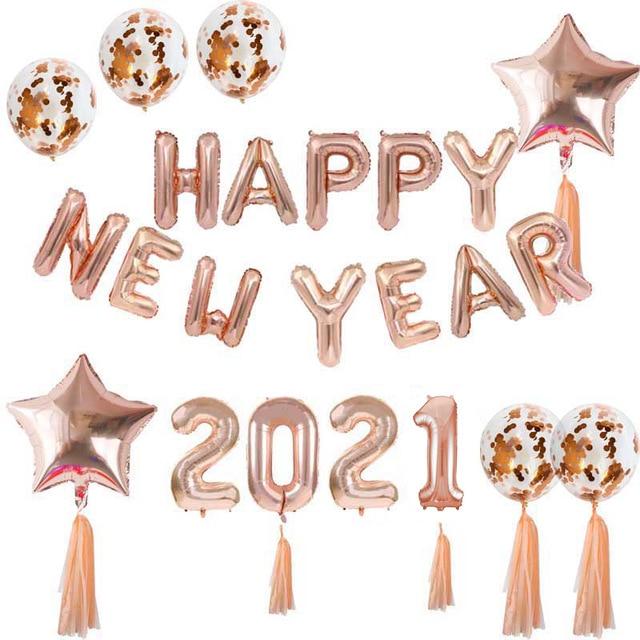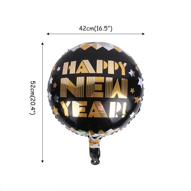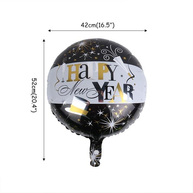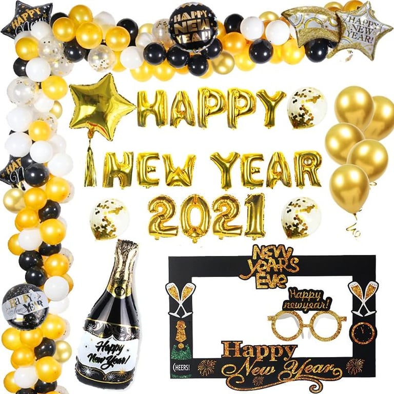 Various balloon New Year's Eve decorations. Which belong at the right party.