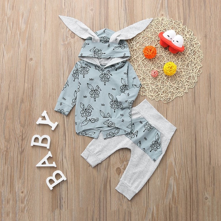 Newborn set with a hoodie featuring long ears and sweatpants.