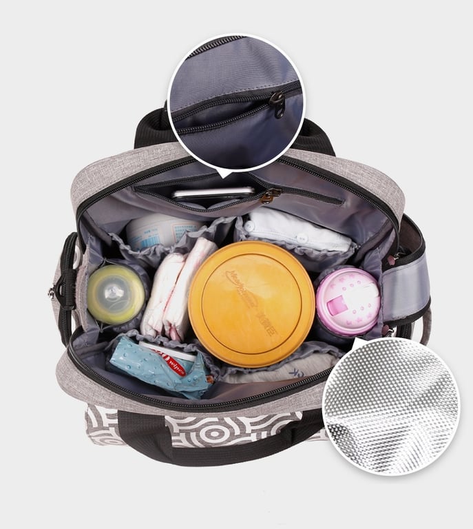 Along with the backpack, you will also receive a changing mat, a shoulder strap, and a bottle thermal cover.