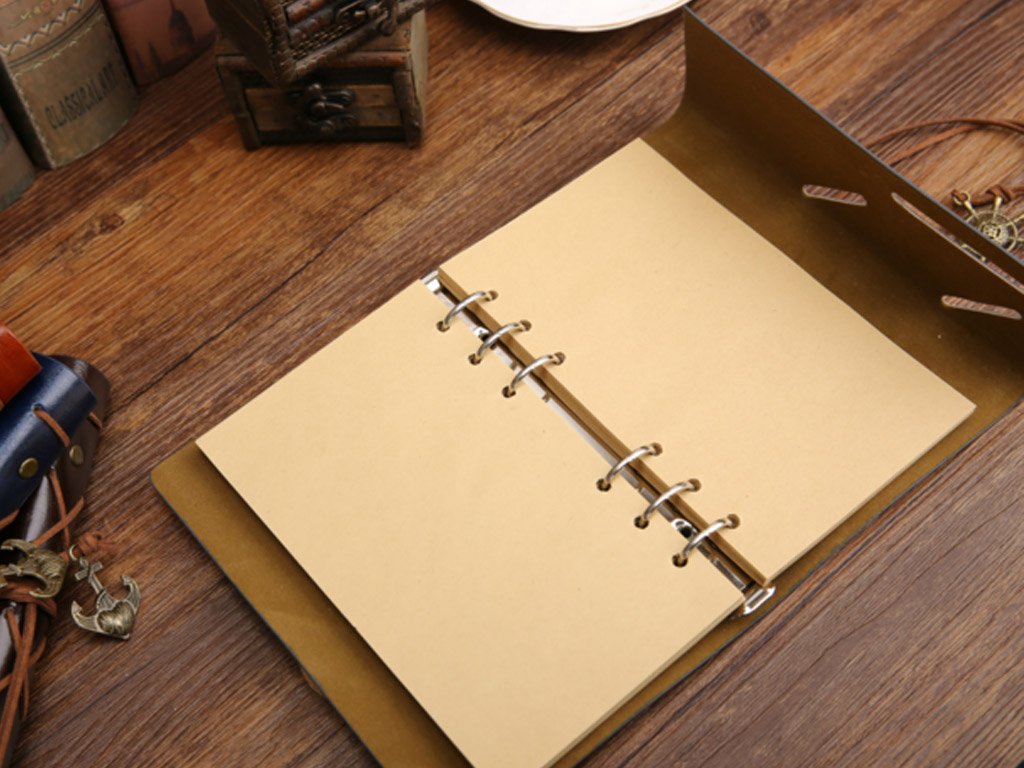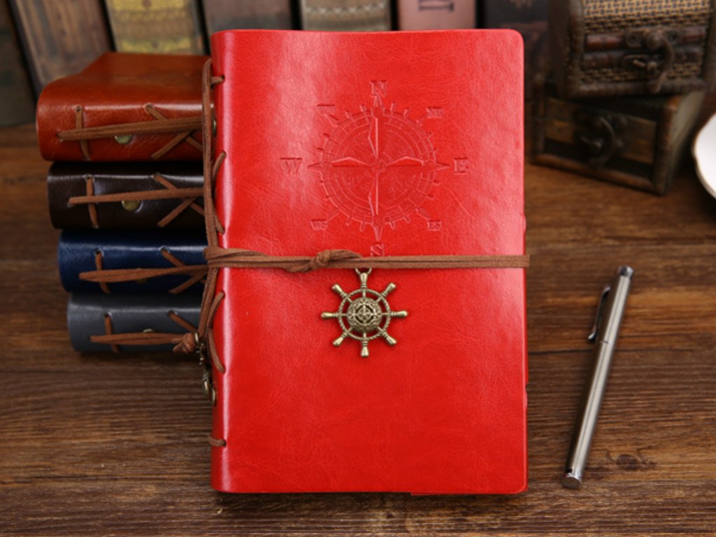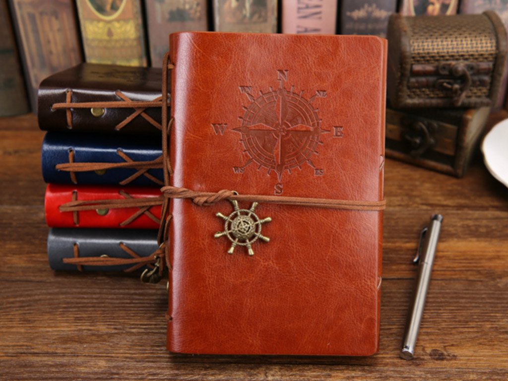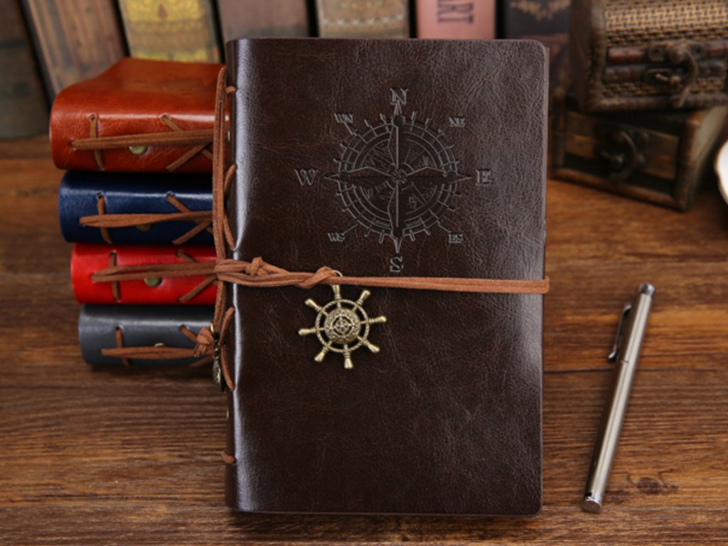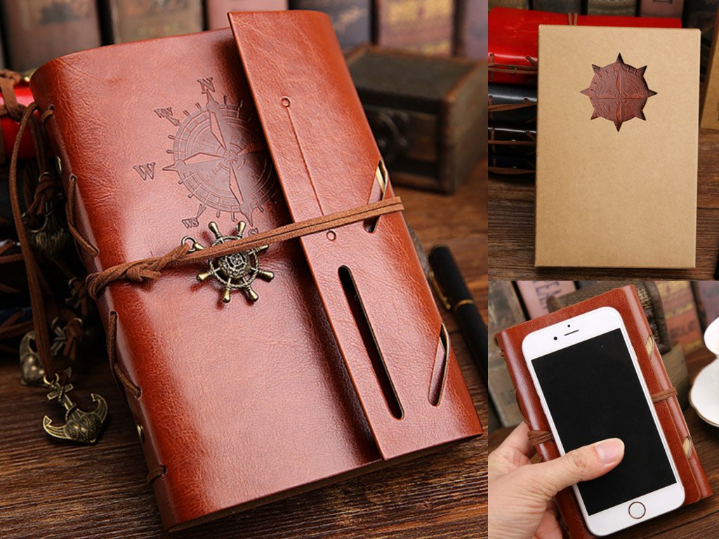 Are you travelling the world, pondering thoughts at home on the sofa, and need to jot down notes or record memories and stories at any moment? Get yourself a beautiful notebook in faux leather with a vintage design. Thanks to its practical dimensions (15×10 cm), you can carry it with you at all times, even in your handbag or backpack. Number of pages: 70. Ring binding with the option to detach individual pages.