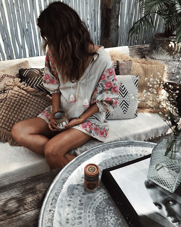 Nude loose airy women's dress with embroidery