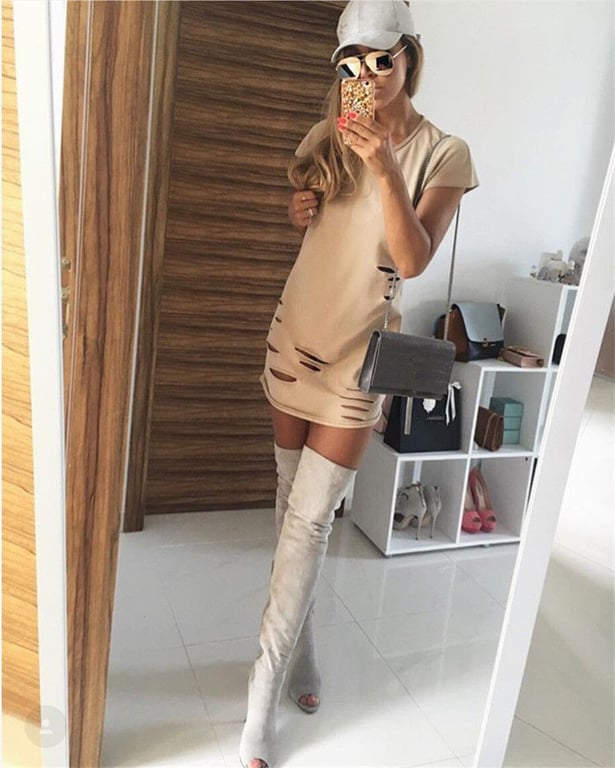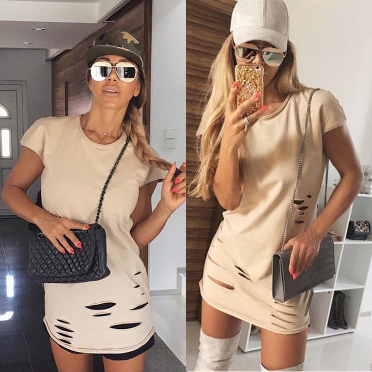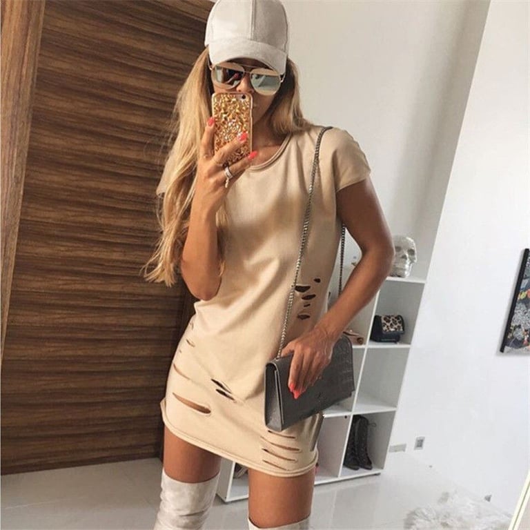Nude torn women's dress for leisure time.