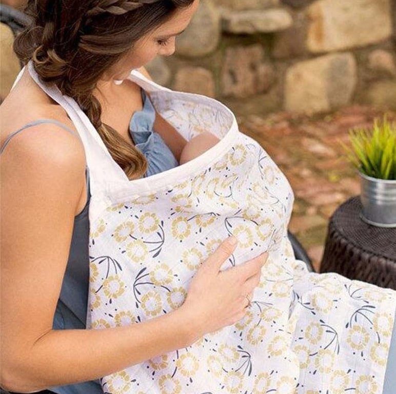A practical nursing apron for breastfeeding outside the home.