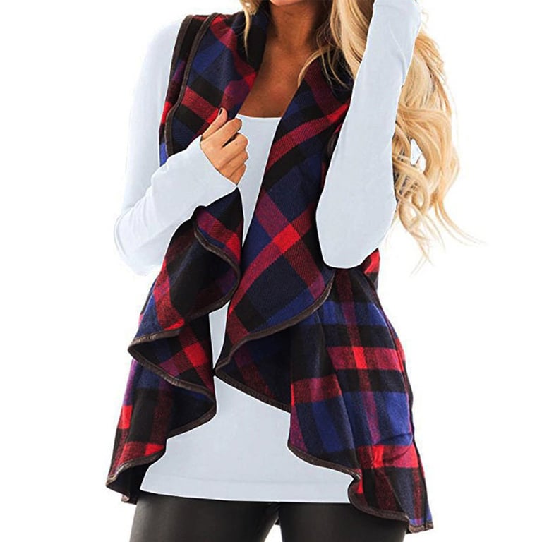 Women's lightweight vest/cover-up made from a pleasant material. The vest features a shawl collar and a checked pattern. Available in several colour options.