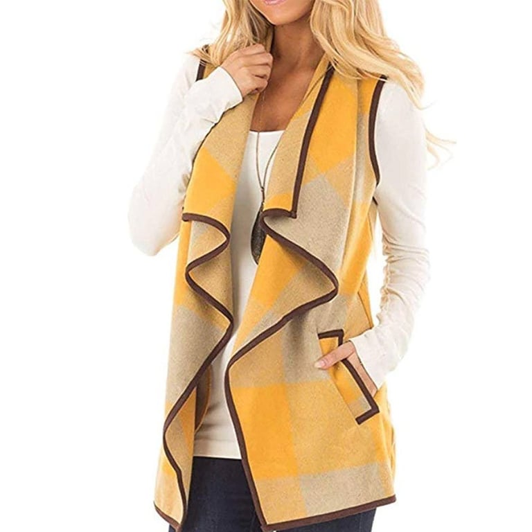Women's lightweight vest/cover-up made from a pleasant material. The vest features a shawl collar and a checked pattern. Available in several colour options.