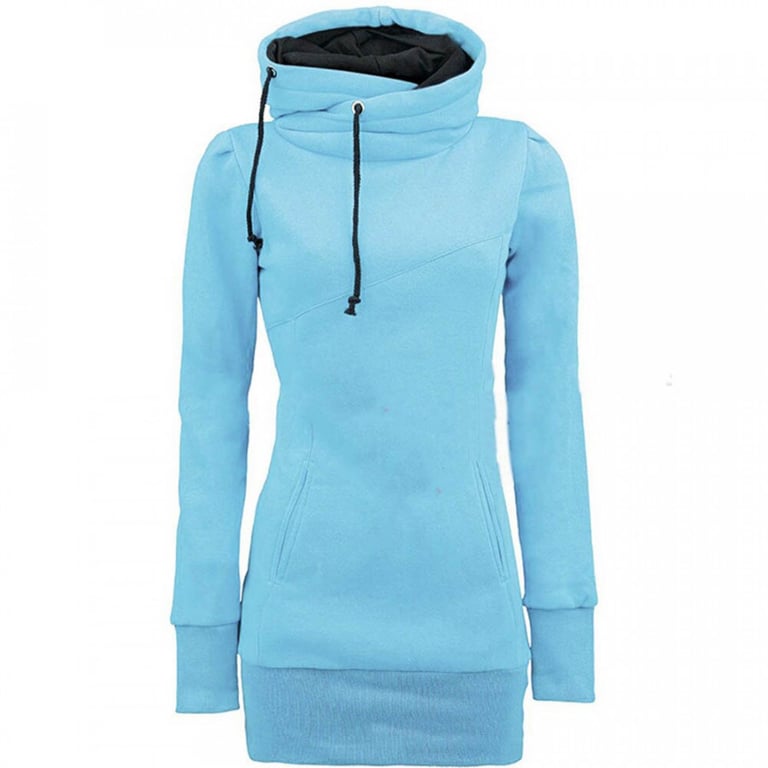 Women's hoodie with a hood and long sleeves. Longer loose fit with a kangaroo pocket. Available in multiple colour options.