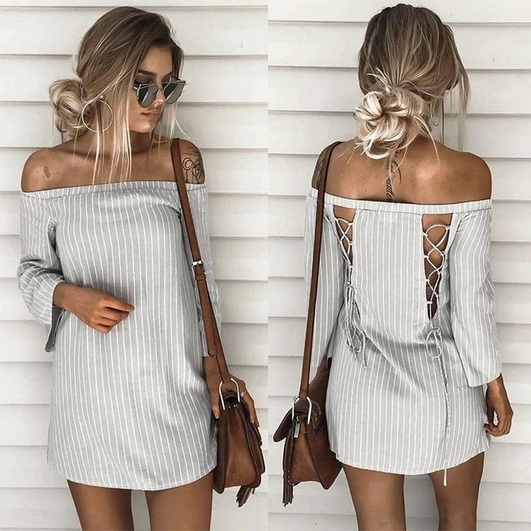 Off Shoulder Women's Summer Dress with Ties at the Back