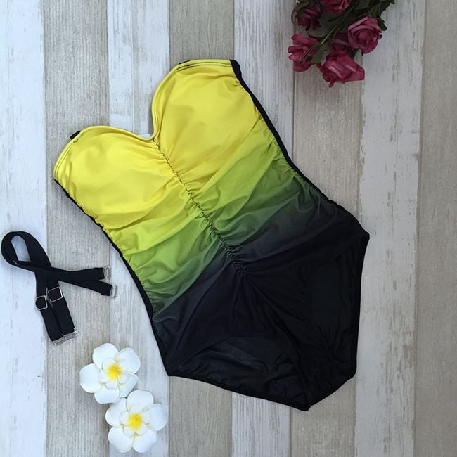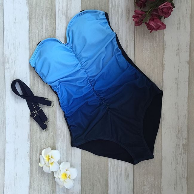 A one-piece ombré swimsuit will be a beautiful piece for the pool and the beach! Measurements shown are of the product, not the body.