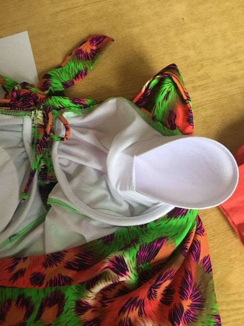 One-piece swimsuit with a stylish print. It ties at the neck with wider straps. The area around the stomach is adorned with light gathering, which is also used on the bust. You can choose from 6 designs and five sizes. Their dimensions can be found below on the size chart.