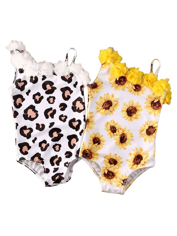 One-piece swimsuits with flowers for little girls