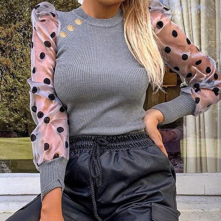 • Tags: Women's blouse, luxury blouse, stylish, elegant, with balloon sleeves, long sleeves, lace, mesh, transparent sleeves