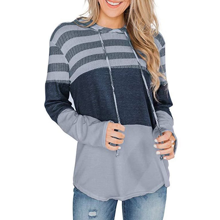 Women's sweater with a hood and long sleeves. Loose fit. Printed with a striped pattern. Available in multiple colour options.
