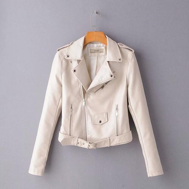 Sexy women's faux leather zip-up jacket, suitable for everyday wear.