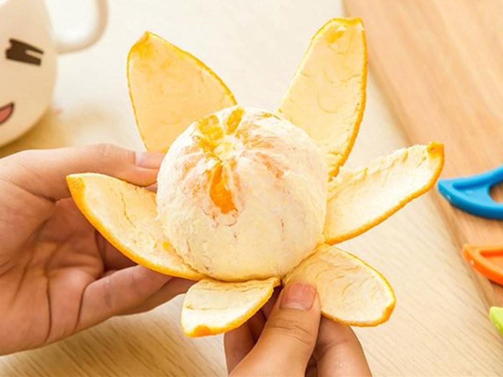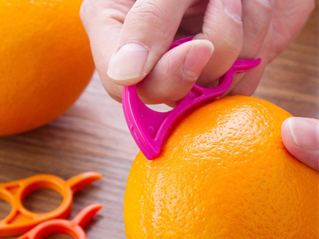We all love oranges. We have them for breakfast with cereal or pack them into the mountains as a snack. Peel an orange (or lemon, grapefruit, and other citrus fruits) in no time with the help of an orange peeler!