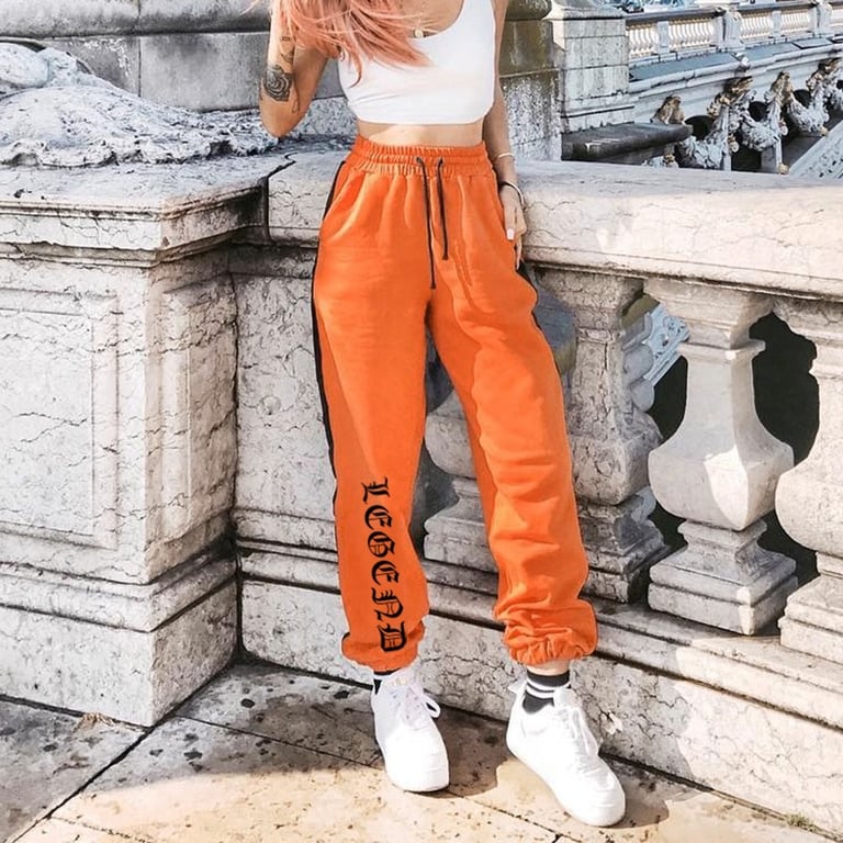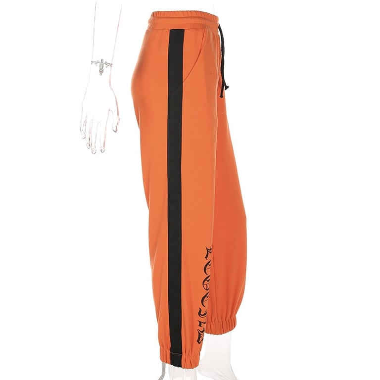 Orange women's sweatpants with a print.