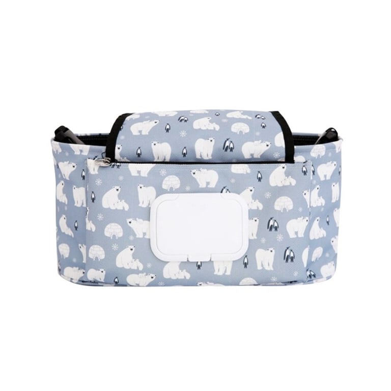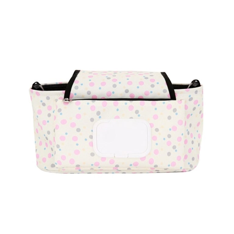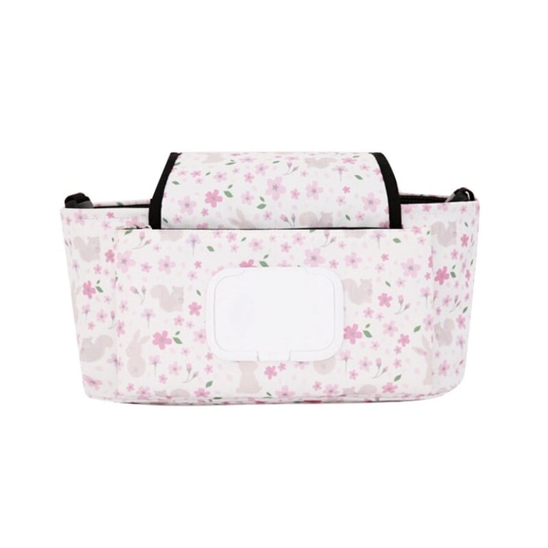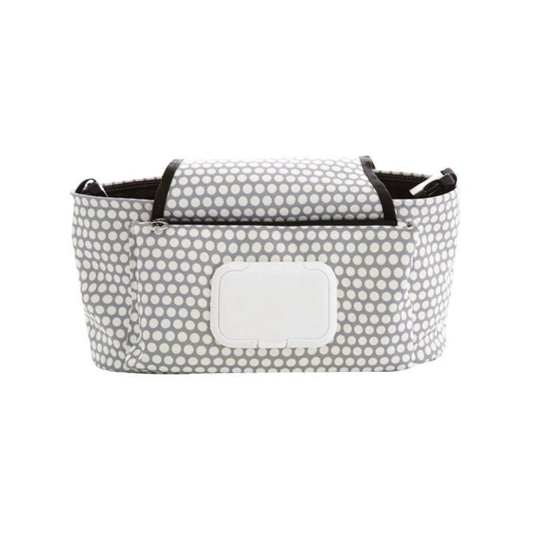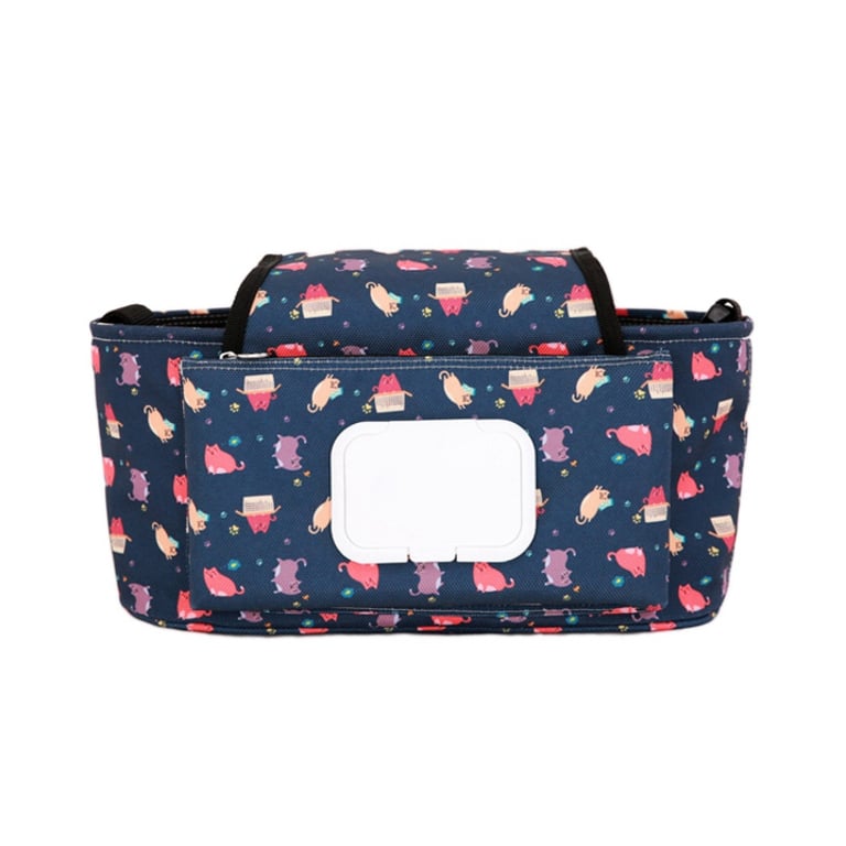 A practical organizer for children's essentials for a stroller.