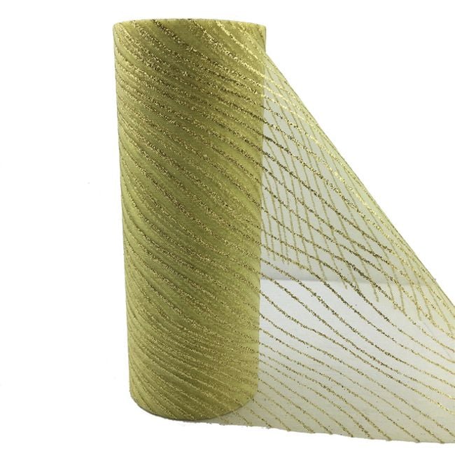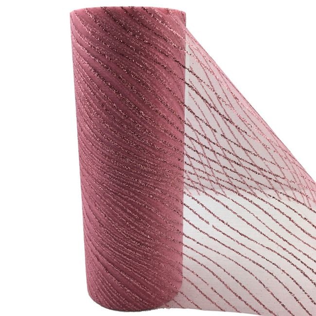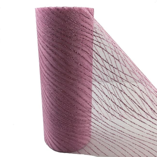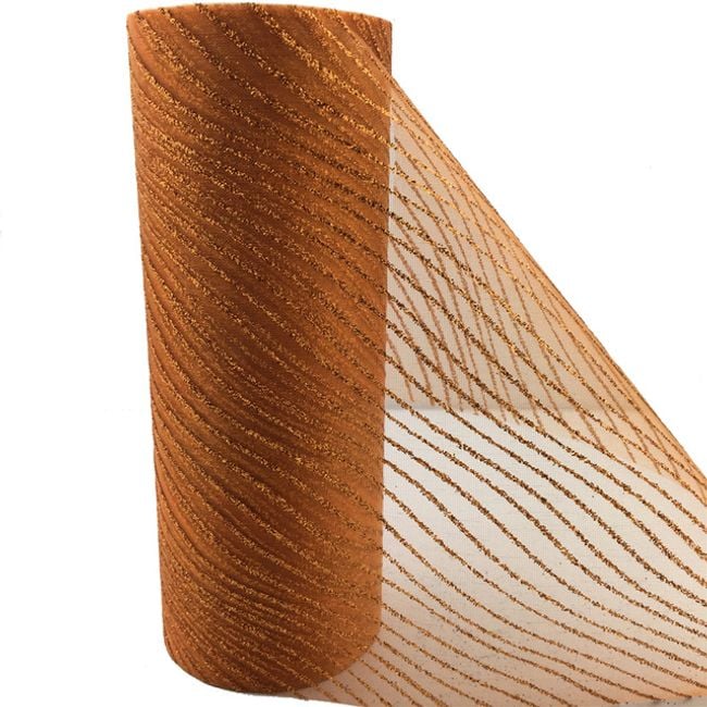Organza measuring approximately 9 m in length and 15 cm in width is perfect for creating various decorations. It is adorned with a texture of fine stripes. You can choose from many colours.