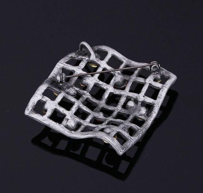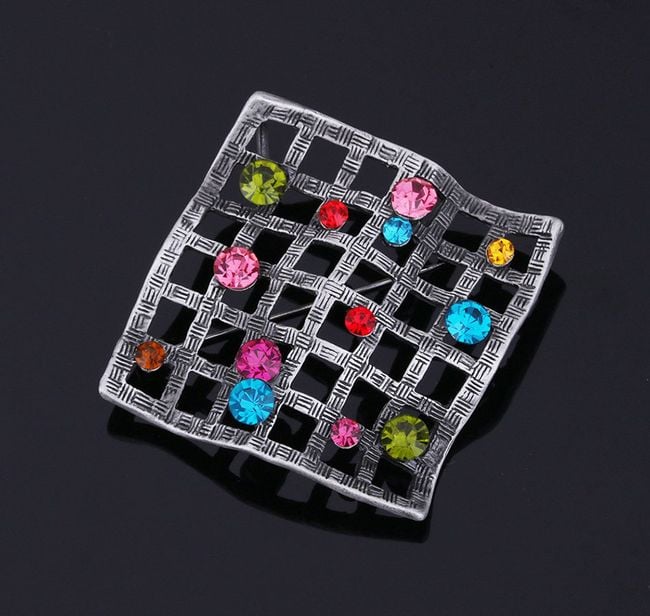 The brooch looks like a net that has caught colourful stones.