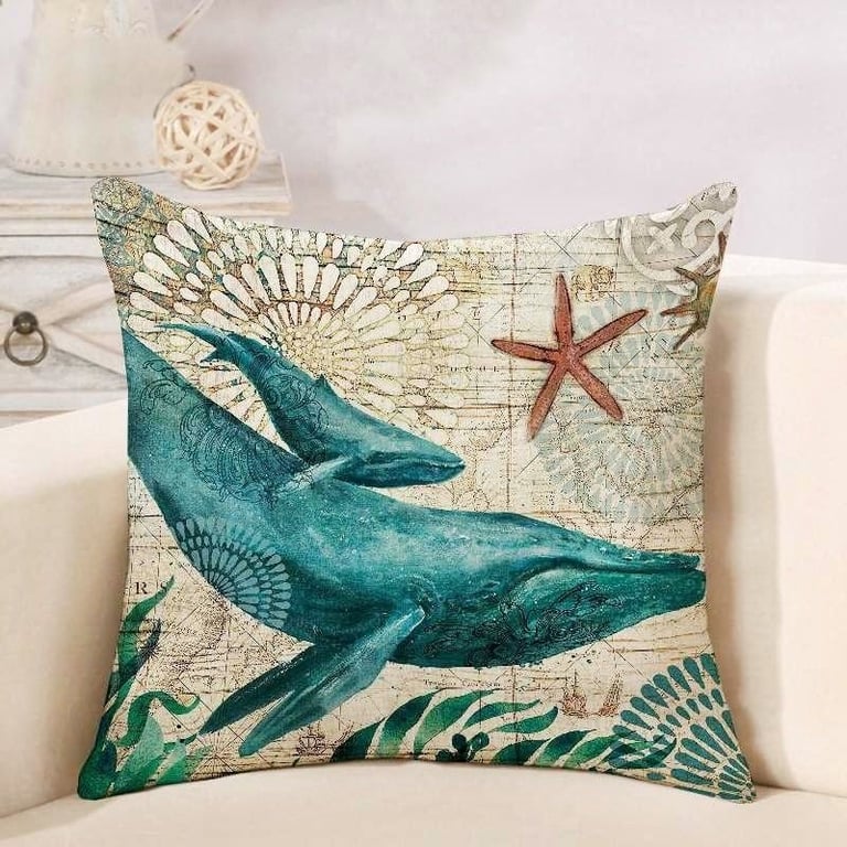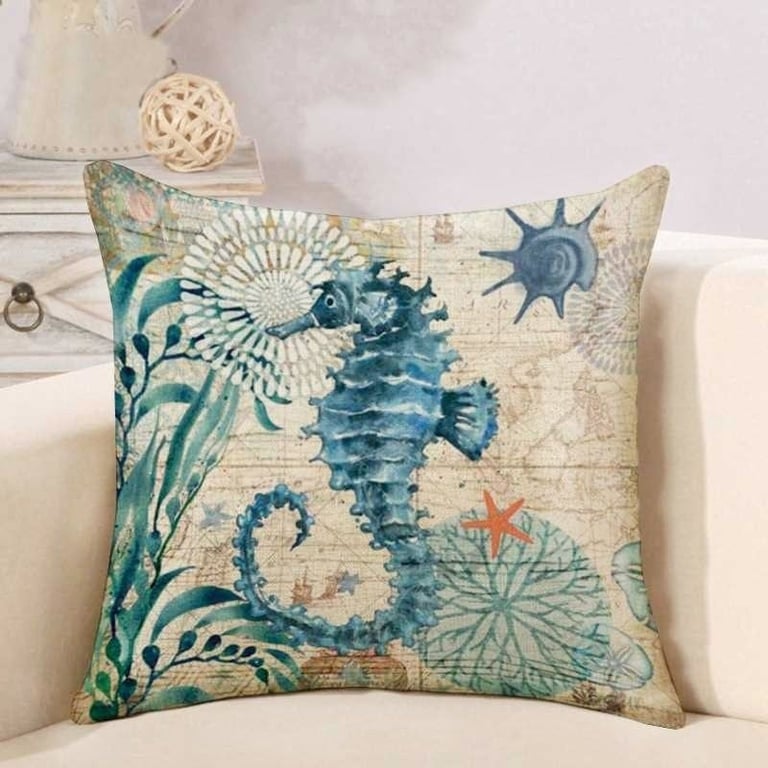 A modern cushion cover featuring a pleasant marine design in beautiful colours.