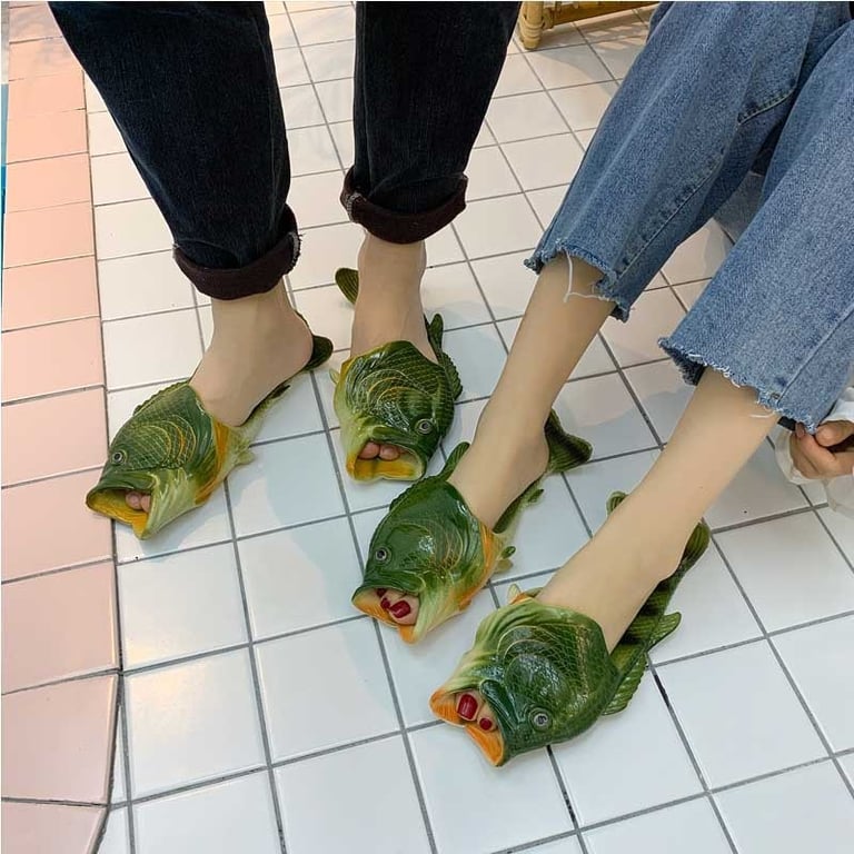 These rubber fish-shaped slippers will delight all fishermen.