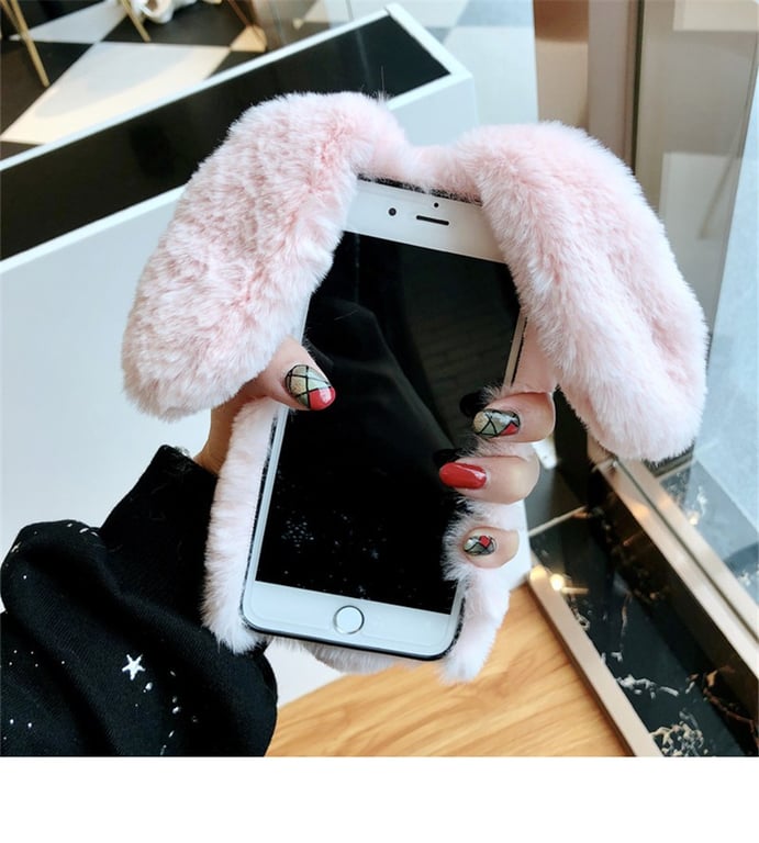 A beautiful fluffy case shaped like a bunny will delight any girl.