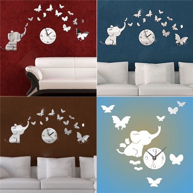 Do you want to decorate your home or office in a unique way with designer clocks that everyone will admire? These original wall clocks feature not only the clock itself but also cute butterflies and an elephant. All parts have a mirrored effect.