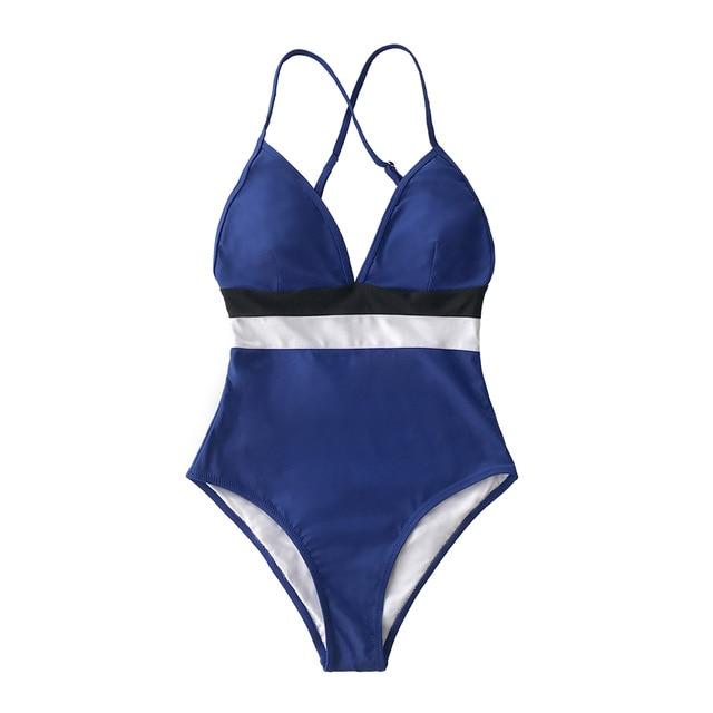 Original one-piece women's swimsuit, made from spandex and polyester. It features a beautifully designed neckline.
