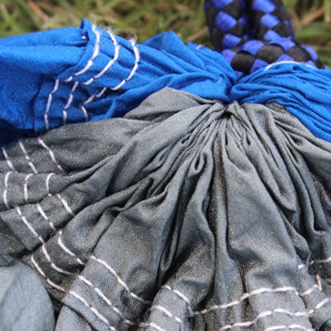 This outdoor hammock can be hung using ropes and carabiners both in the garden and in nature. Just find a suitable spot (e.g. trees, etc.). It features a small pocket on one side for storing small items. Available in several colours.