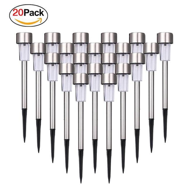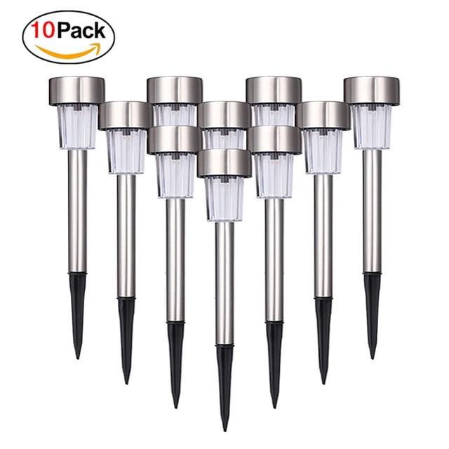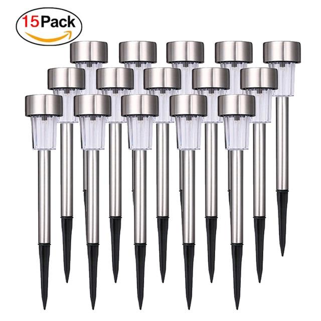 Outdoor LED solar lights in various colours and quantities.