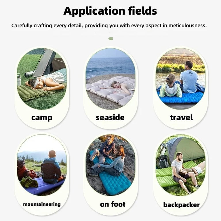 Lightweight and practical self-inflating mattress, ideal companion for camping, hiking and festivals. Thanks to the built-in pump it inflates easily by foot – no electrical or manual pump is needed. The ergonomic air design adapts to the body, insulates from the cold ground and ensures a comfortable night’s sleep. When packed it has compact dimensions and fits into a backpack, so you can always have it with you.