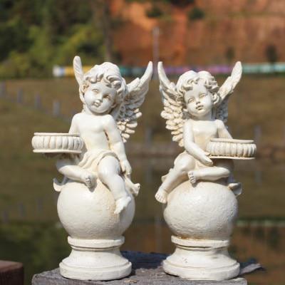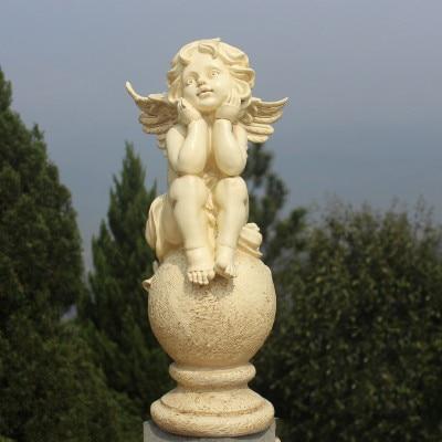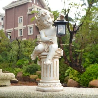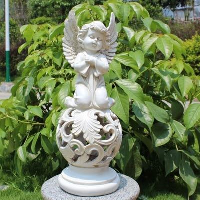 Outdoor angel sculpture in various styles.