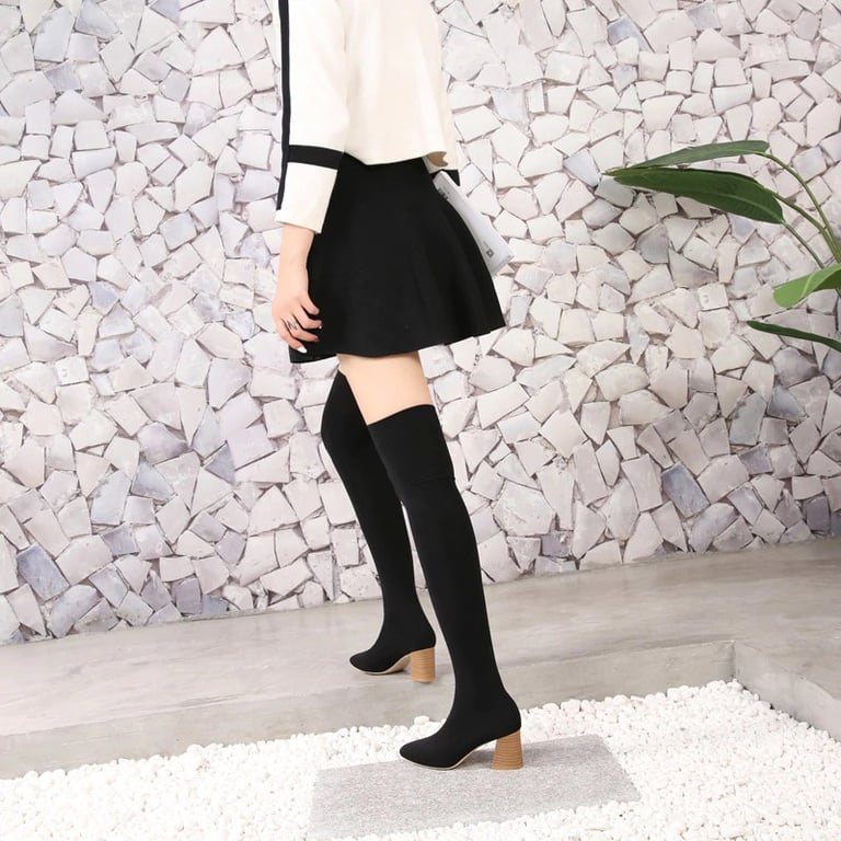 Every woman will love these high-quality over-the-knee boots with a block heel.