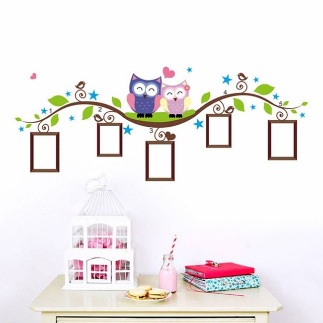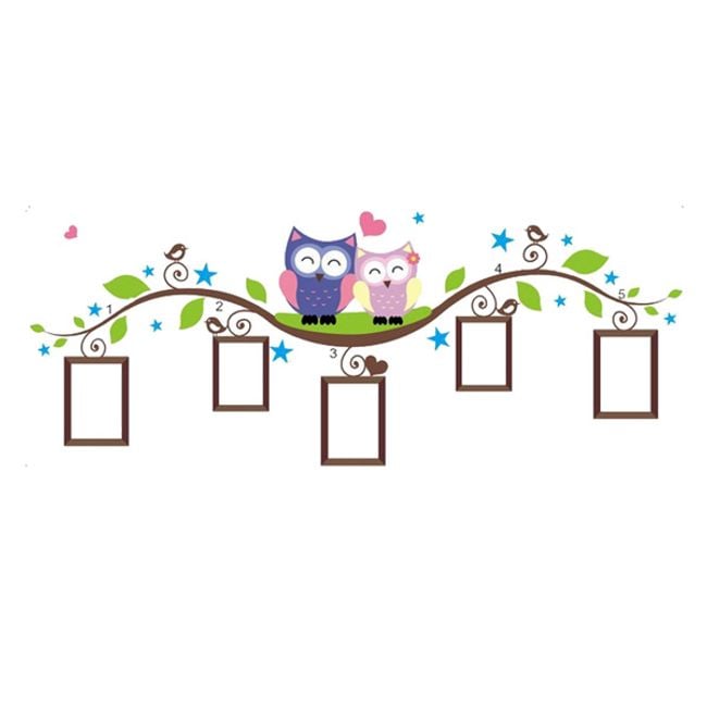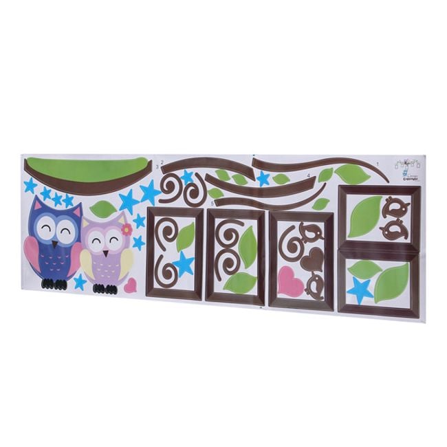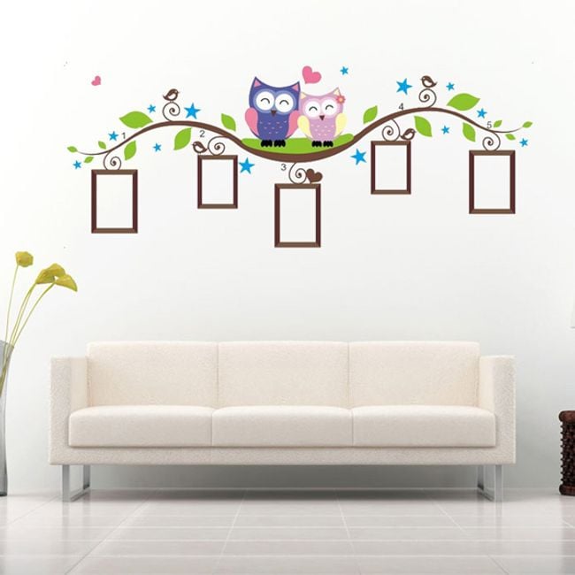 A great household sticker that beautifully enlivens empty walls. The sticker features an image of a branch with lovebirds sitting on it. Rectangles hang from the branch where you can place photos of your loved ones.