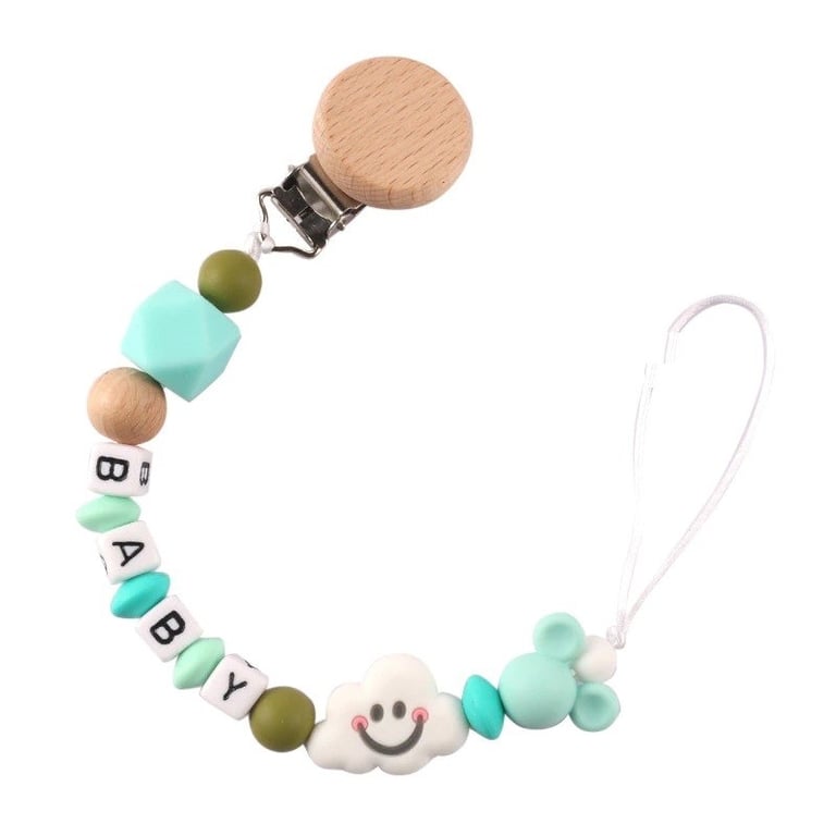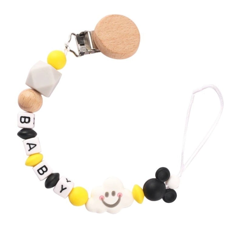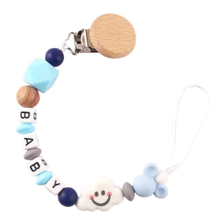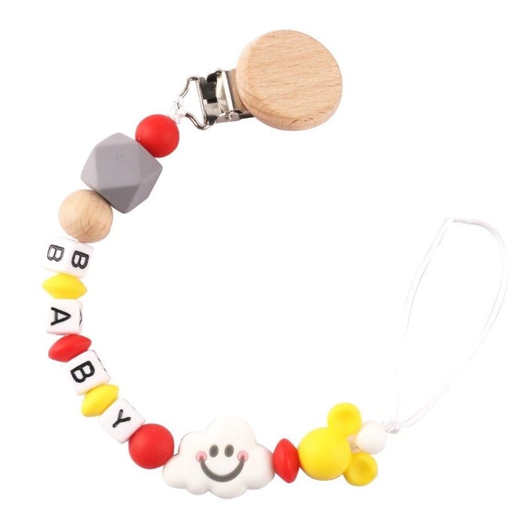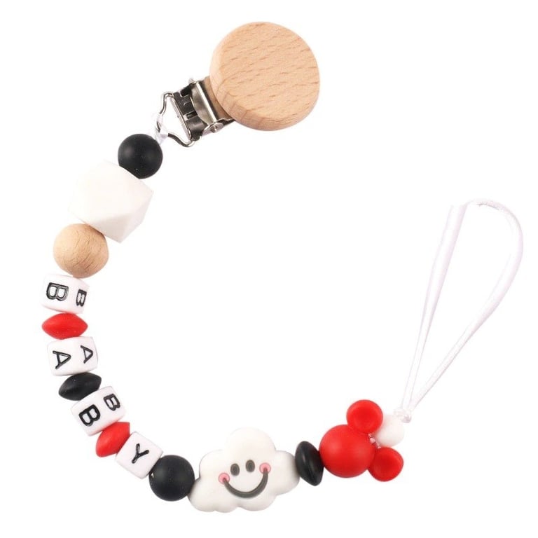 The chain is made of non-toxic silicone and natural wood. A practical helper to prevent losing the dummy. You can safely attach it to clothing.
