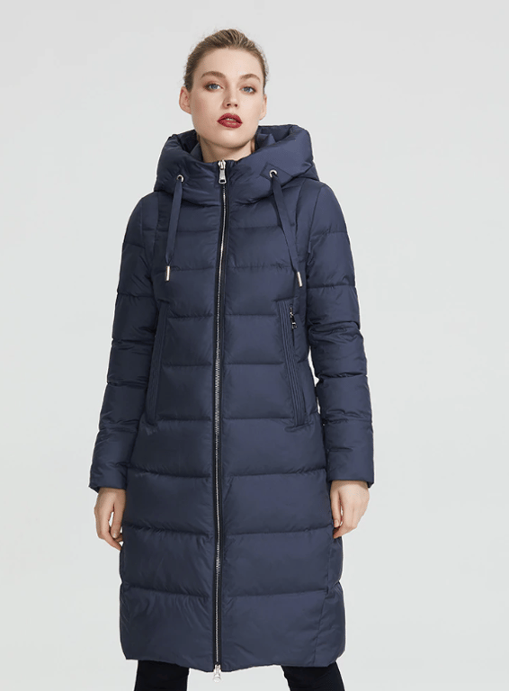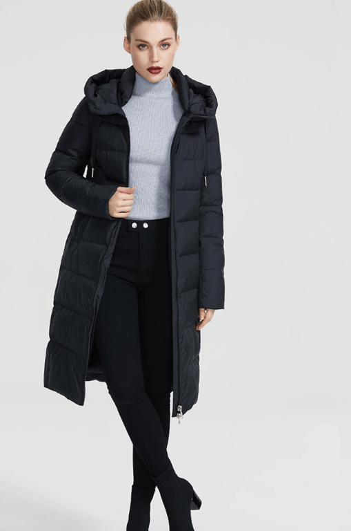 Padded quilted women's winter jacket with a stand-up collar