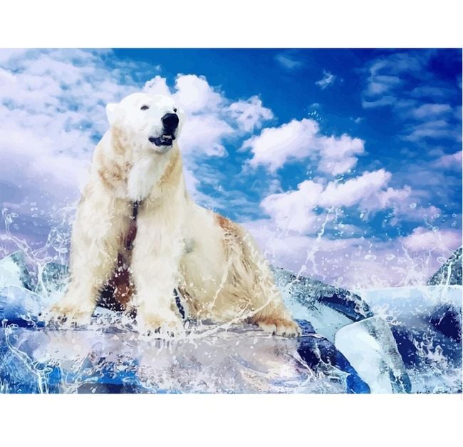 Paint by numbers picture depicting a polar bear on an ice floe.