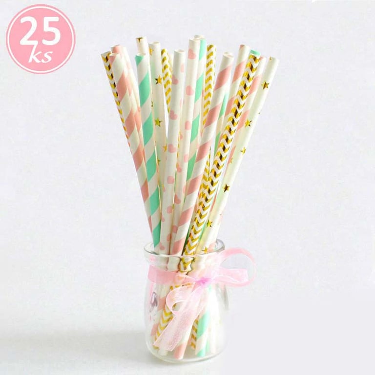 Practical paper straws with decoration, perfect for wedding parties. The set contains 25 pieces.