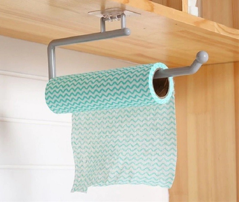 The paper towel holder is a practical helper for every household. No drilling into the wall is required. Just remove the protective film and stick it to a smooth surface. It holds firmly.