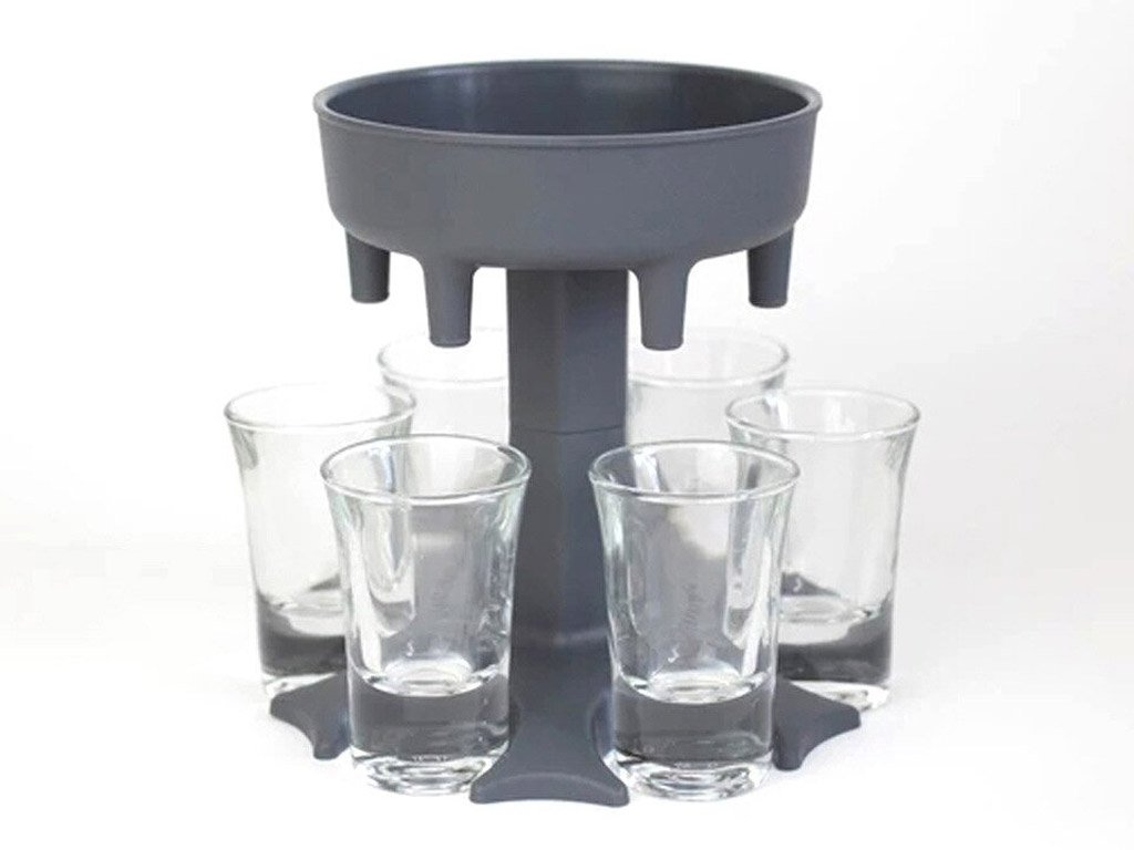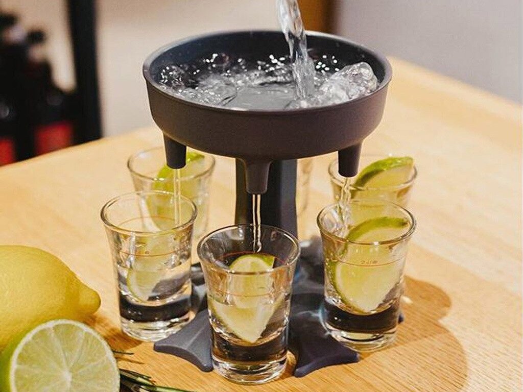 Pour up to six shots at once! The party alcohol dispenser is the perfect and stylish tool for evenly pouring drinks into glasses and shot glasses. Once poured, it serves as a handy handle for easy holding and transporting the poured drinks. The drink must be poured into the centre to ensure precise uniformity.