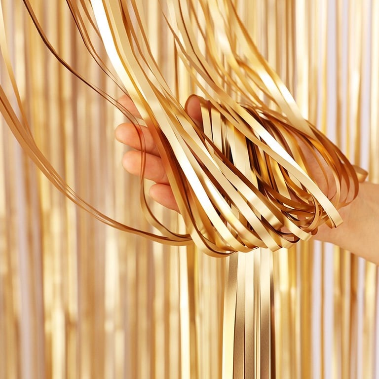 The party curtain will add style to your party. This matte curtain is suitable for decorating a photo booth, birthday or wedding celebration. It is made of aluminium foil.