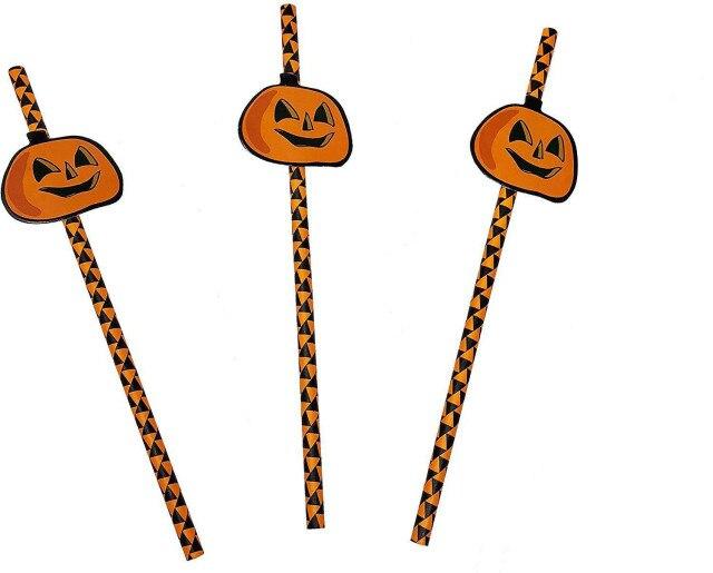 Various decorations suitable for a Halloween party. There are plates, cups, cutlery, straws, napkins, and banners to choose from.