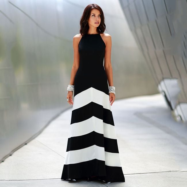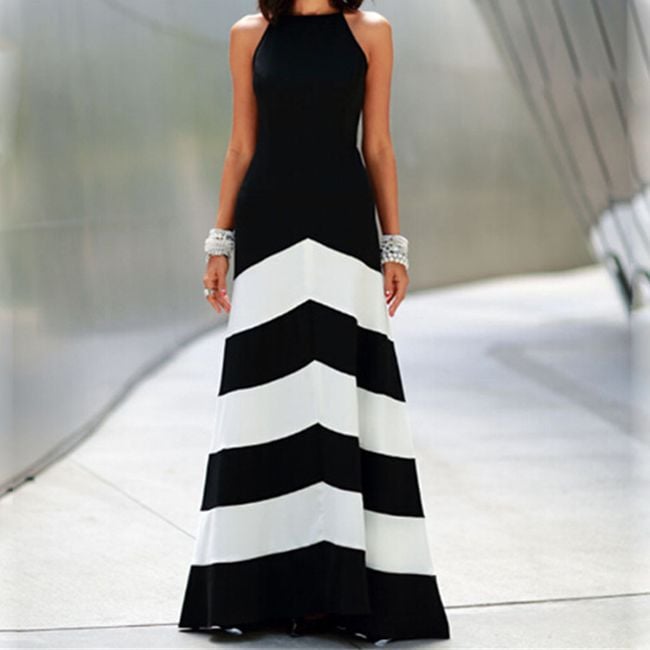 You will fall in love with these beautiful women's dress with a striped skirt at first sight! They are sleeveless and have a looser fit, making them suitable for women with a larger bottom. The measurements provided are for the product, not the body.