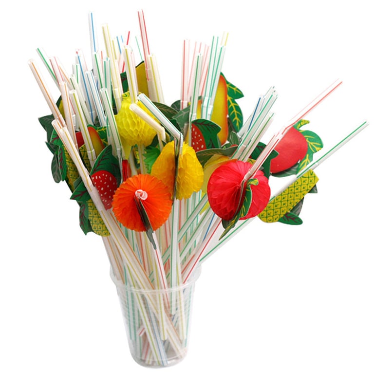 Party straws with fruit decoration – 50 pcs