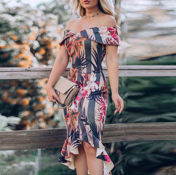 Patterned interesting longer summer women's dress with print