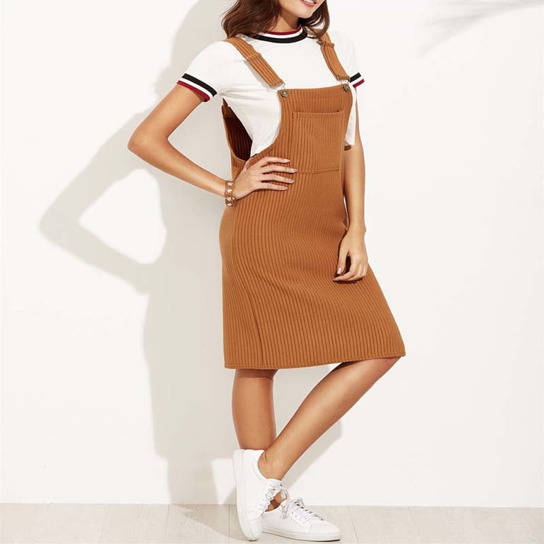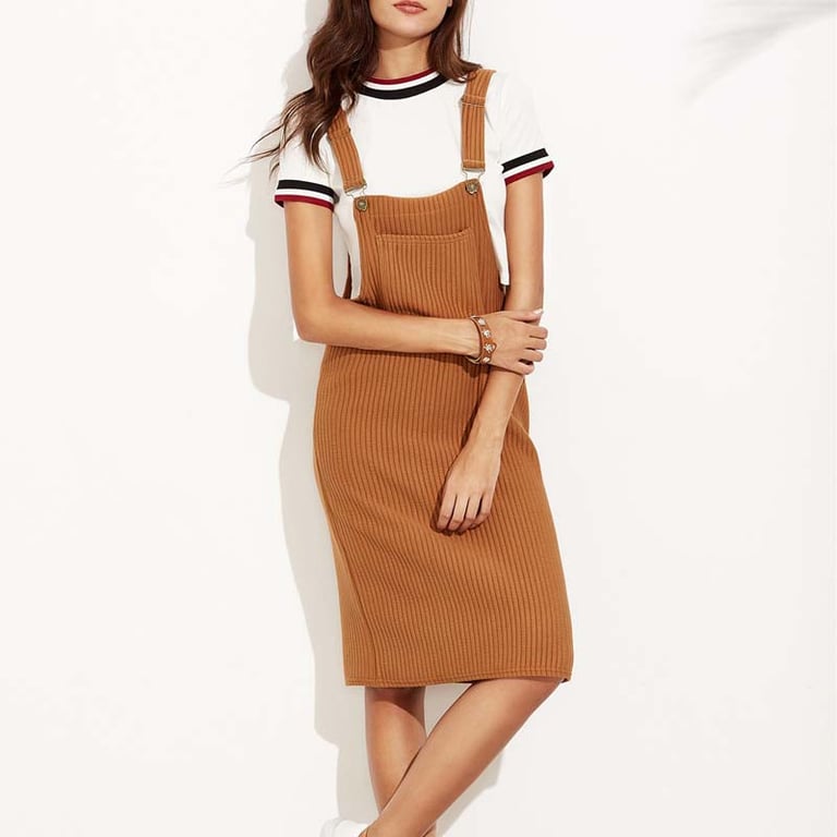 Modern women's dress with a bib.