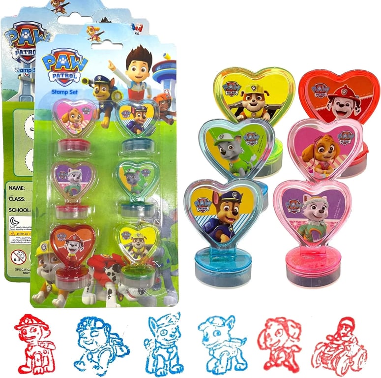 The children's stamp set with motifs from the popular PAW Patrol cartoon will delight every little creative. The package contains 6 different stamps featuring favourite characters, such as Ryder, Chase and other rescue dogs. The stamps are made from durable plastic, have built-in ink, and are suitable for children to craft at home, at school and in nursery.