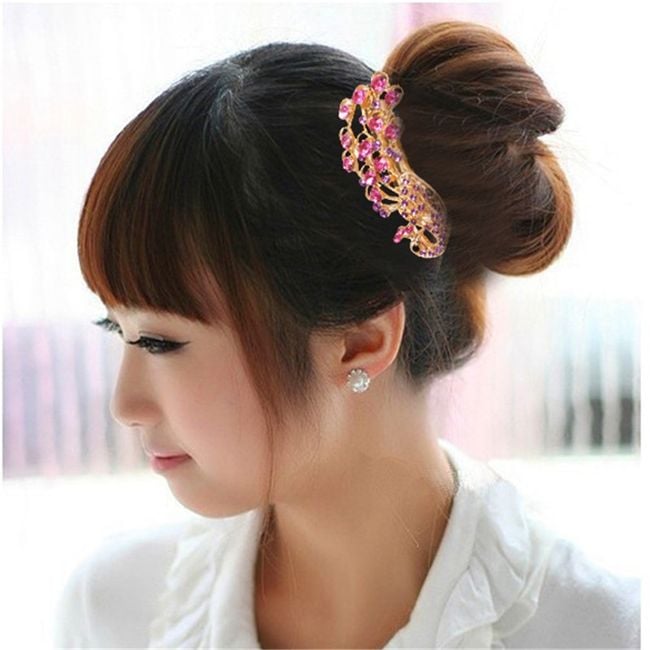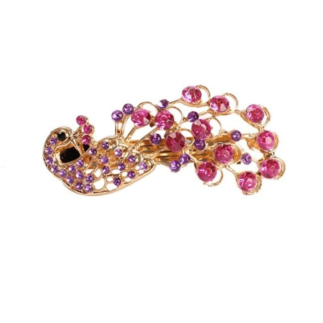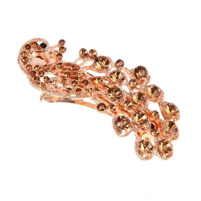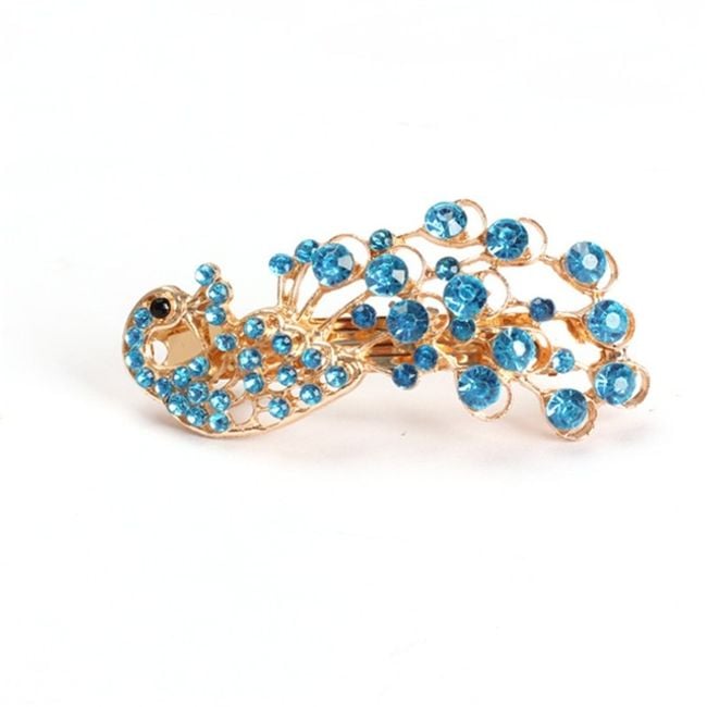 The hair clip looks like a peacock, adorned with small rhinestones, and is suitable as a hair accessory.