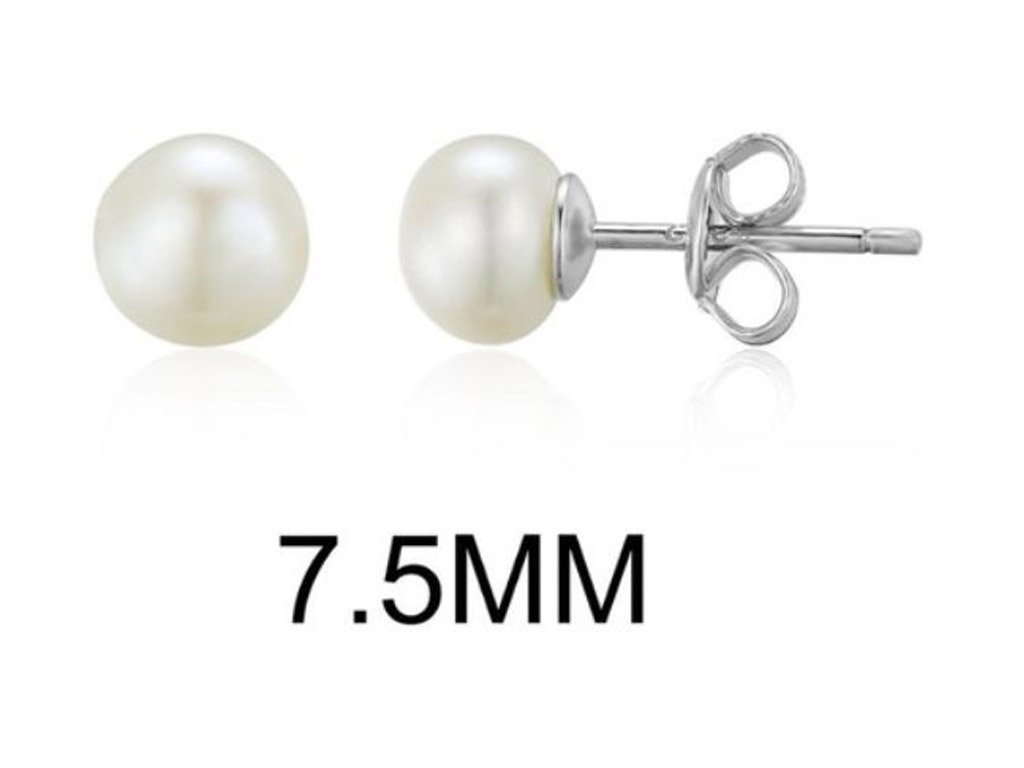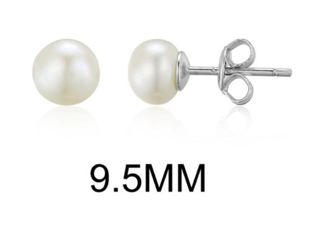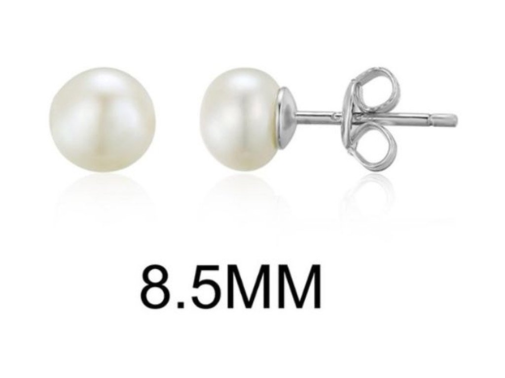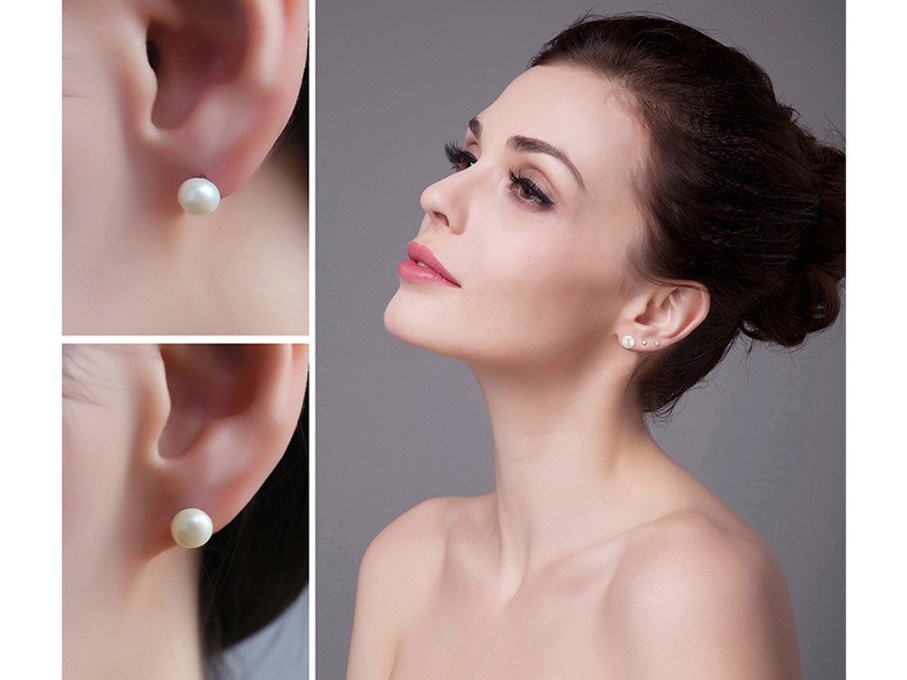 Pearl earrings with a white pearl and a stud fastening. With their simplicity, pearl earrings have always attracted attention and complemented formal dresses with their understated beauty. They express freedom and modesty, tenderness, and the charm of every woman. Available in 4 sizes.