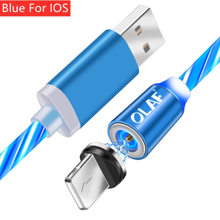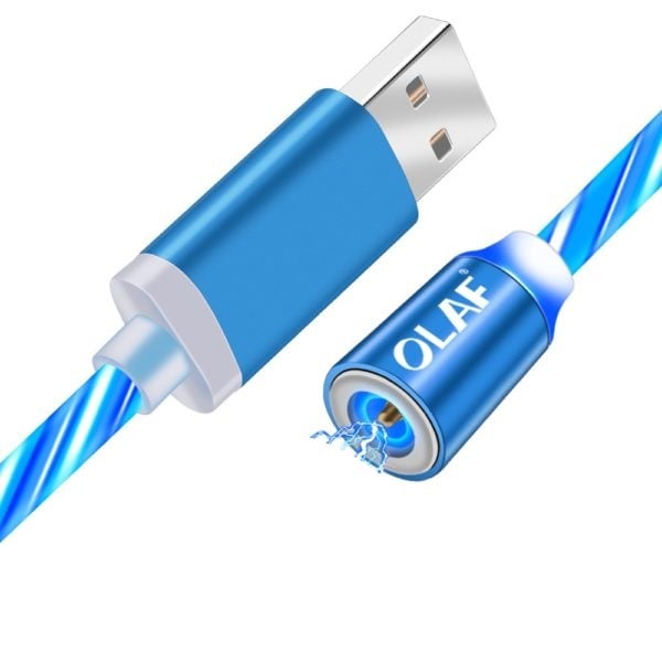 Illuminated charging cable with a magnet for fast charging of mobile phones and other devices via USB. Choose the colour and connector type for your device from the selection. If you have multiple devices with different connectors, you can purchase these connectors separately as well. The connector can also be kept plugged into the device at all times, making it even easier to connect by simply bringing the magnet close. Length 1 m.