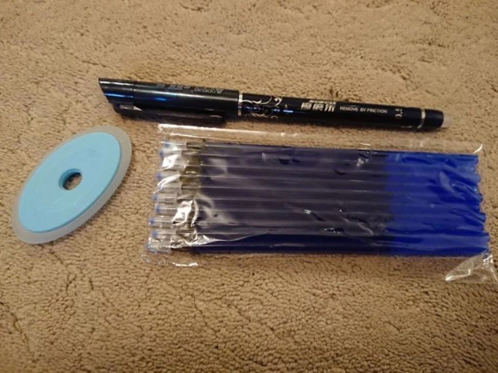 Pen with special ink and eraser – the written text can be erased and rewritten in the same place. Choose from various ink colours and pens.